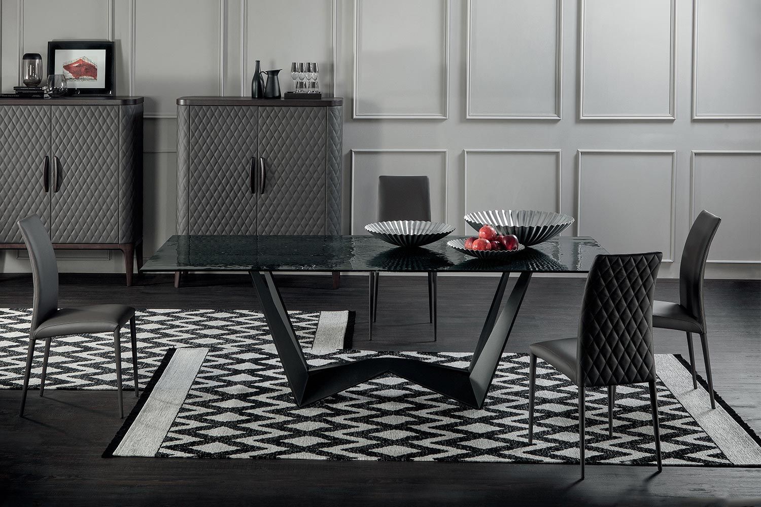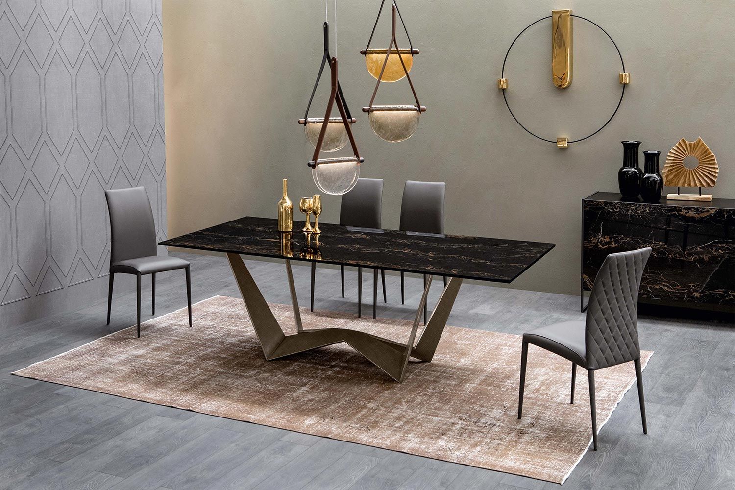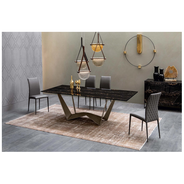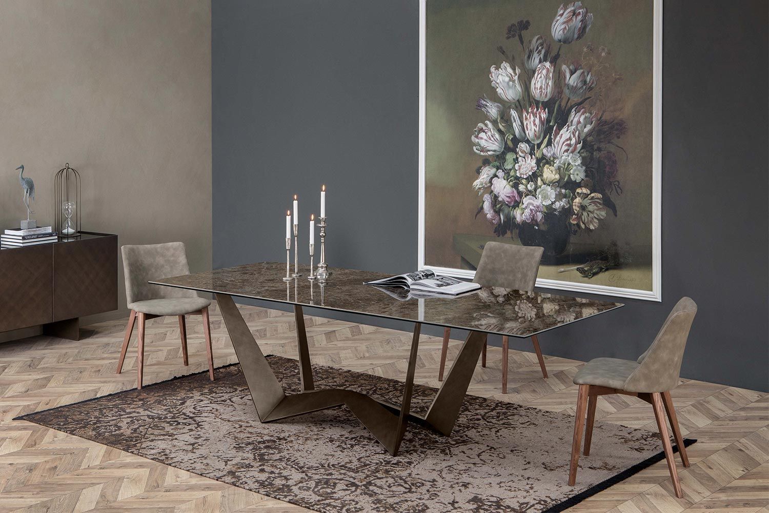Reverse stół od Tonin Casa robi imponujące wrażenie w nowoczesnym pomieszczeniu. Rzeźbiarska podstawa w zabawny sposób wykorzystuje geometrię. Duża przestrzeń na górze zapewnia dużo miejsca do wspólnego jedzenia i wspólnego posiłku. Dzięki zastosowaniu najlepszej jakości materiałów stół Reverse będzie podstawą mebli na pokolenia. Wyprodukowany we Włoszech z niesamowitą dbałością o szczegóły, stół Reverse dobrze łączy się z różnymi krzesłami Tonin Casa. Dostępne w trzech rozmiarach z różnymi opcjami ze szkła i ceramiki na blat oraz z różnymi metalowymi wykończeniami podstawy.