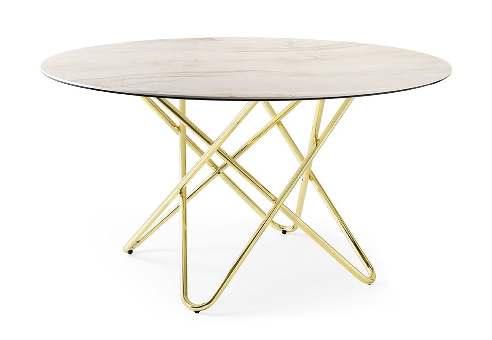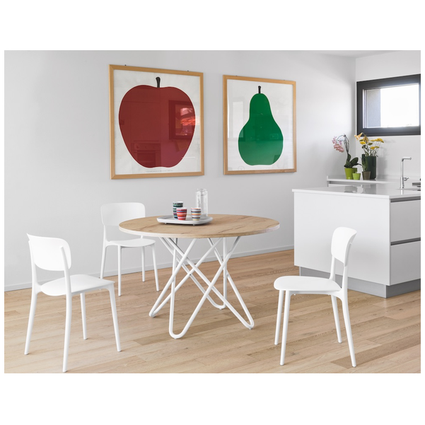 Pewnego dnia podczas zaćmienia narodził się Stellar ze swoim zaokrąglonym, nierozciągającym się projektem, aby oświetlić jadalnię czystą elegancją. Rama zawiera metalowe nogi, które przeplatają się jak naszkicowane linie grafika i przedstawiają kosmiczny wzór pełen powściągliwej elegancji, na którym spoczywają okrągłe blaty z drewna i białego lakieru. Wspaniała sylwetka, nowoczesny rdzeń i minimalistyczny design zapewniają idealną równowagę między lekkością a wytrzymałością.