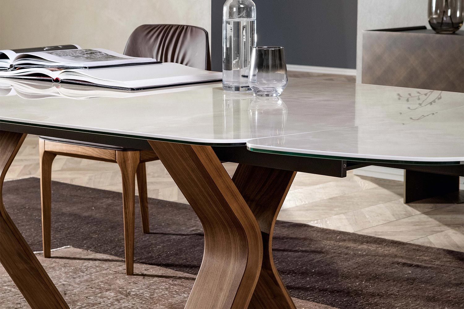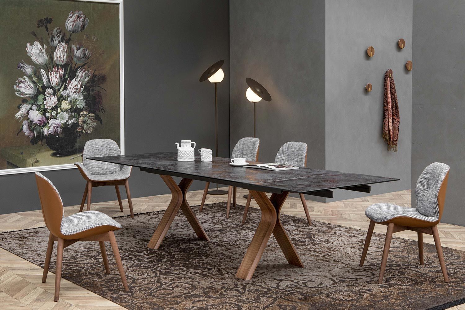Ciesz się wszystkimi posiłkami przy uroczym stole Still firmy Tonin Casa. Wspaniała sylwetka wyróżnia się na tle pozostałych mebli w pokoju. Dzięki nogom w kształcie litery X ma ładną geometrię i zapewnia wsparcie. Aby zwiększyć atrakcyjność, dwustronne listwy rozkładane wysuwają się jednym płynnym ruchem, aby natychmiast stworzyć więcej miejsca, co jest idealne dla dużych rodzin. Zaprojektowany przez Angelo Tomaiuolo i wyprodukowany we Włoszech w celu zapewnienia jakości, stół jest dostępny w kilku rozmiarach. Blat jest dostępny w różnych wykończeniach ze szkła i ceramiki, metalowe szyny przedłużające są w różnych kolorach, a podstawa jest dostępna w szeregu opcji drewnianych.