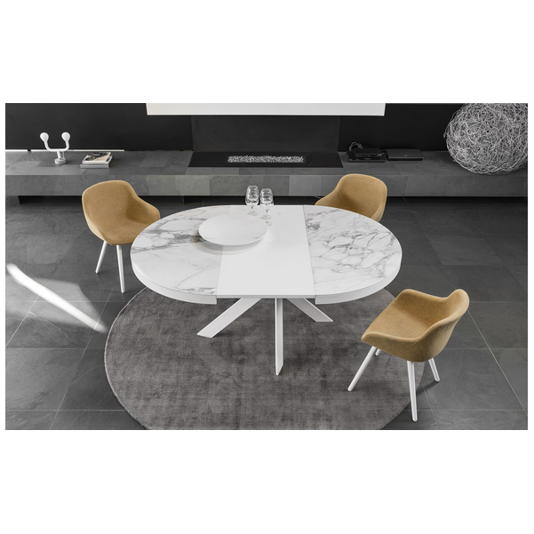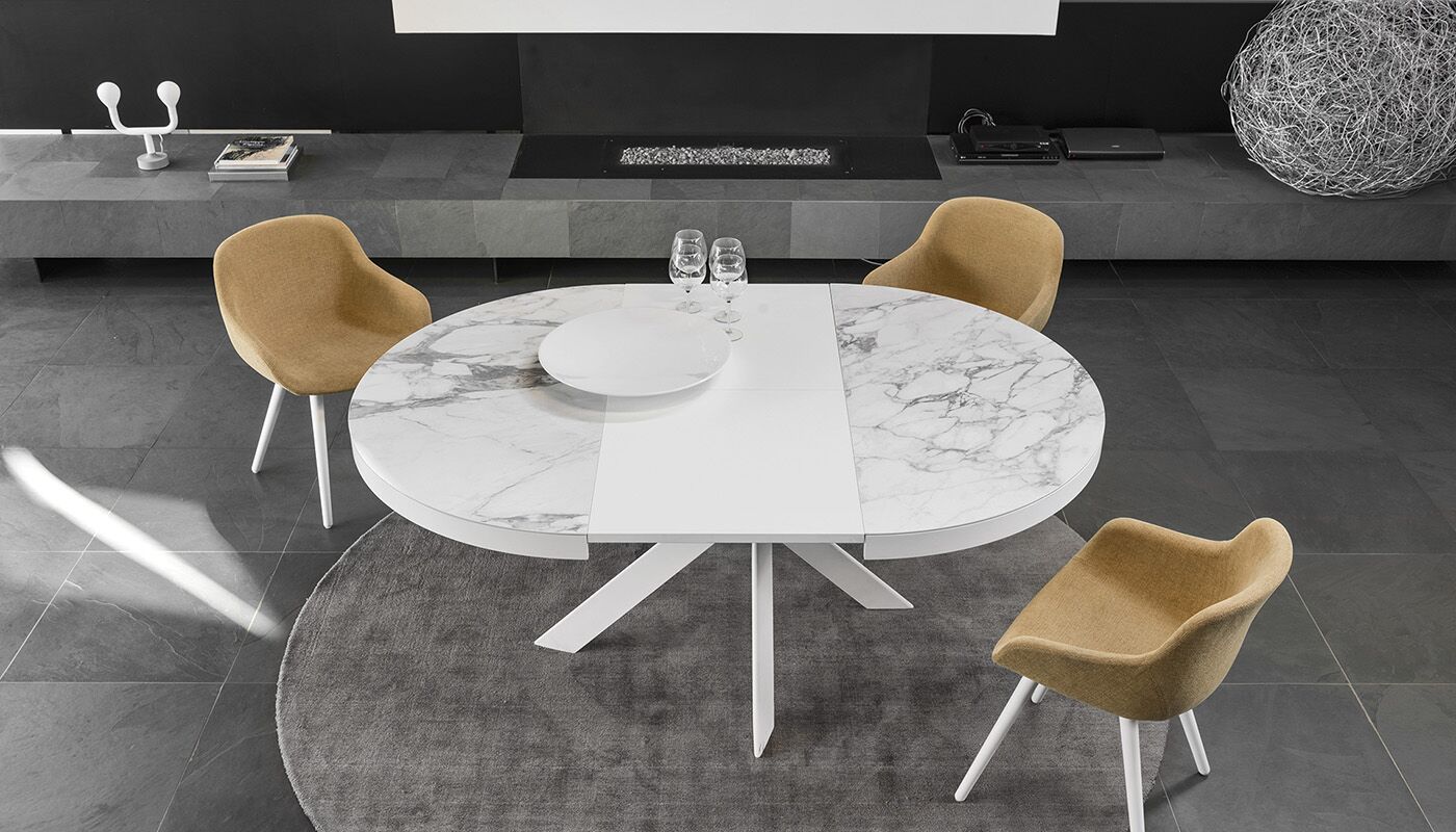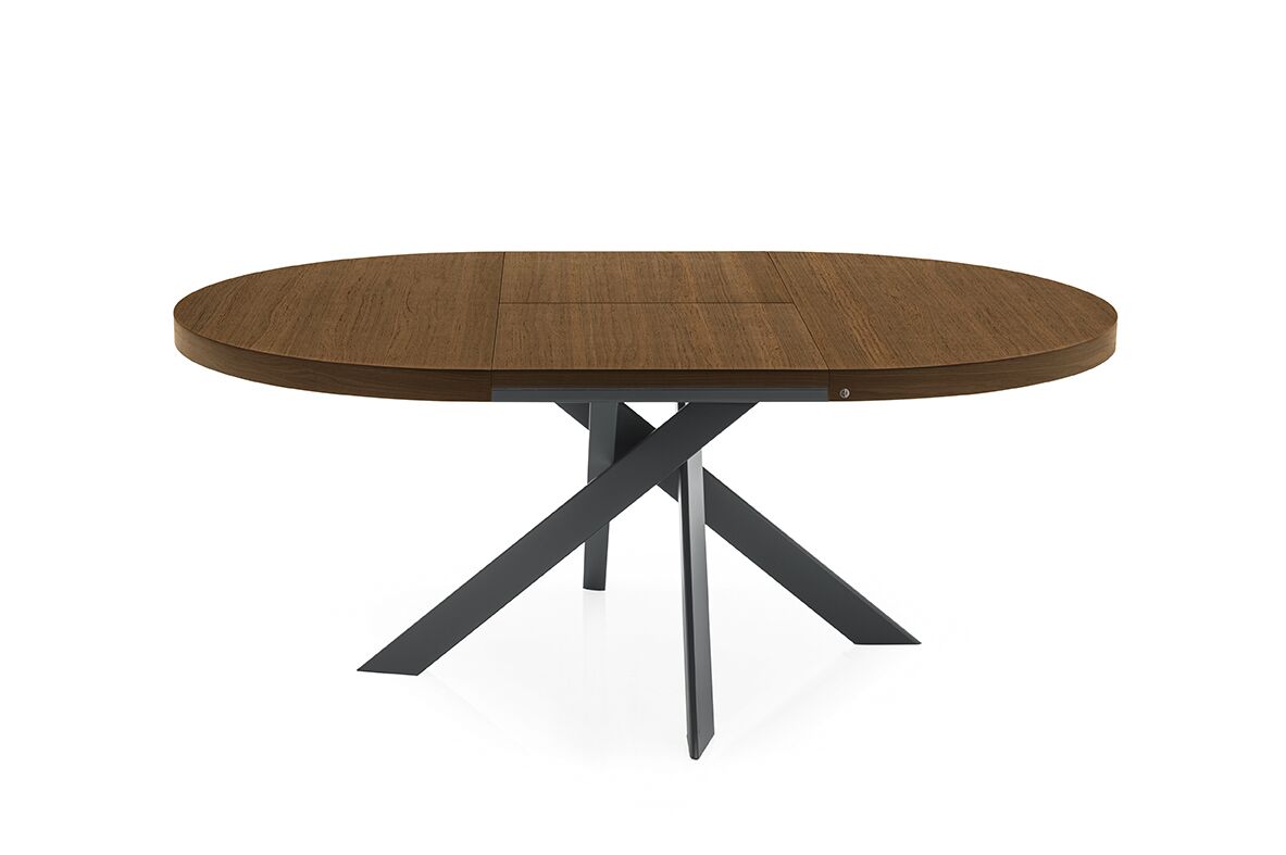 Tivoli to okrągły rozkładany stół z oryginalną metalową podstawą składającą się z 4 zazębiających się elementów w kształcie litery V, przypominający grę Shanghai. Solidny okrągły blat jest dostępny w wersji drewnianej lub ceramicznej i można go rozbudować dzięki centralnemu mechanizmowi otwierania motylkiem. Tivoli zajmie centralne miejsce w Twojej jadalni. Odkryj właściwe wykończenie dla Twojego ustawienia.