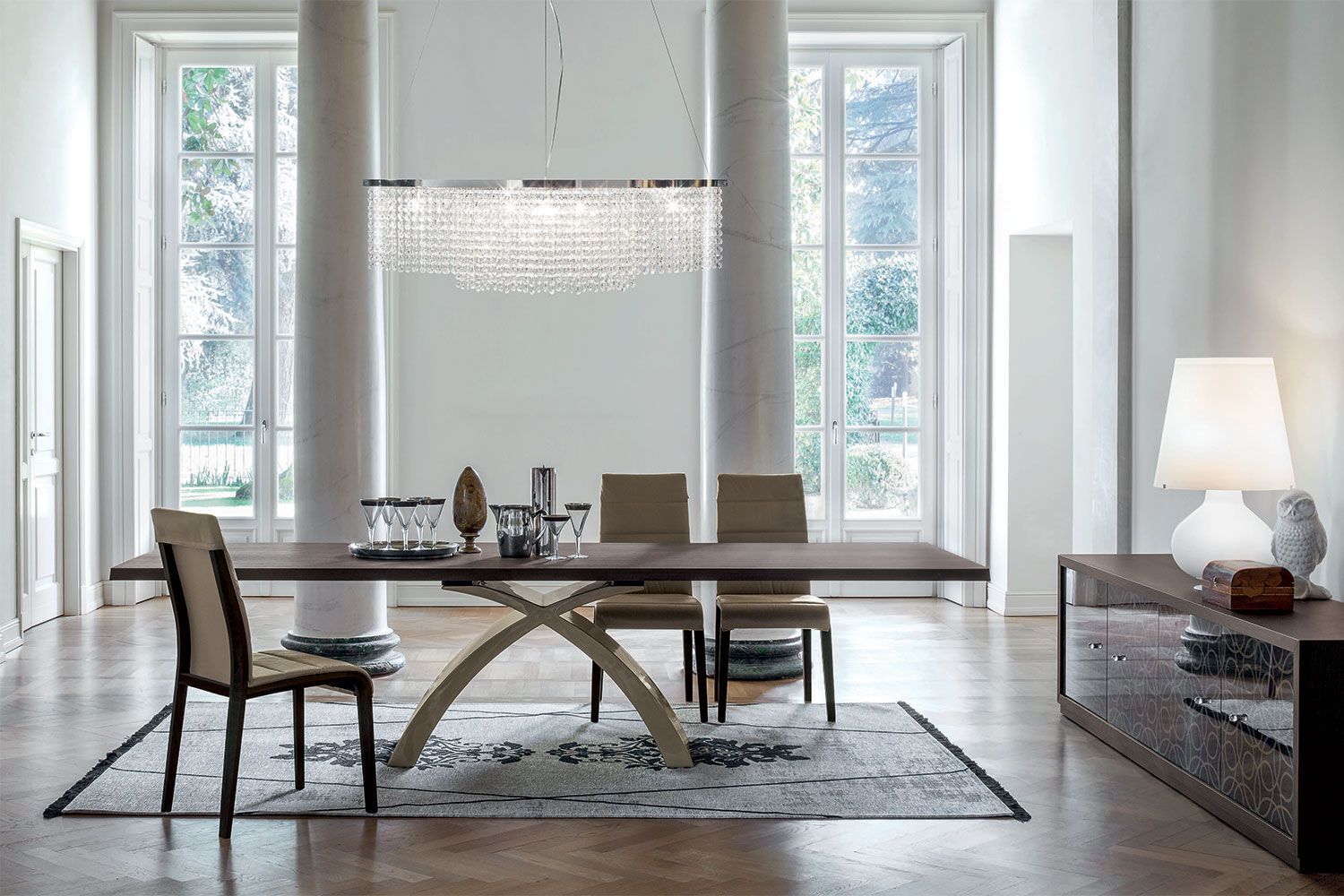 Stół Tokyo marki Tonin Casa robi imponujące wrażenie we współczesnym pomieszczeniu. Rzeźbiona podstawa przyciąga wzrok, a krzyżujące się zakrzywione wsporniki dodają wyrafinowanego stylu, aby uczynić stół wyrazistym elementem. Dzięki dużej ilości miejsca na blacie wiele osób może usiąść przy stole i wygodnie zjeść. Różnorodne modne krzesła Tonin Casa pięknie wyglądają w połączeniu ze stołem, tworząc spójny wygląd. Zaprojektowany przez Gino Carollo i wyprodukowany we Włoszech wyłącznie z najlepszych materiałów, stół Tokyo to trwały mebel, który będzie trwał przez długi czas. Wybieraj spośród różnych wykończeń blatu, podczas gdy rama i podstawa mają różne wykończenia. Dostępne są dwa rozmiary dostosowane do indywidualnych potrzeb.