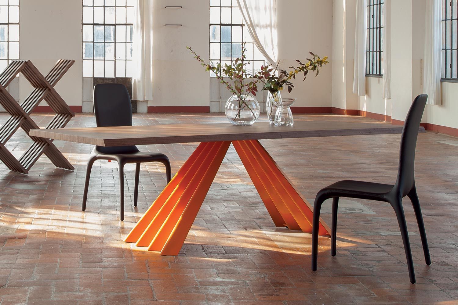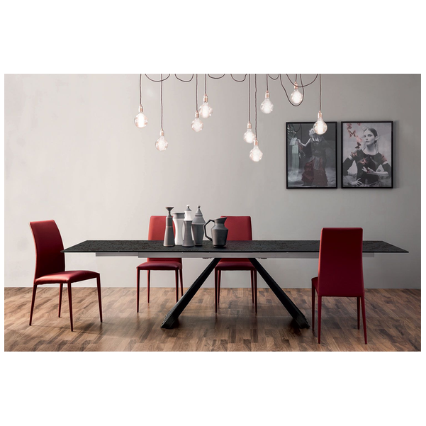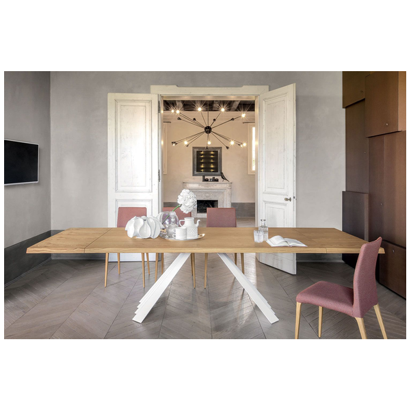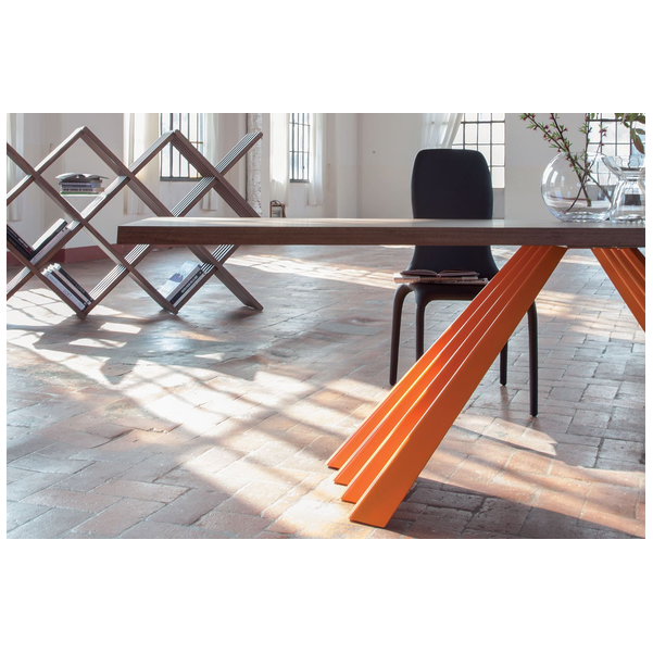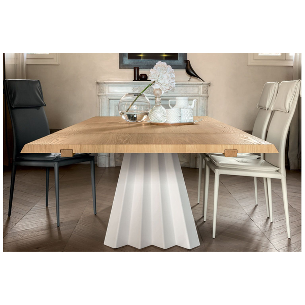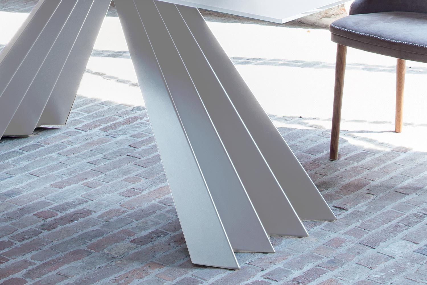 Dodaj odważny punkt centralny do swojej współczesnej przestrzeni za pomocą rzeźbiarskiego arcydzieła, stołu Ventaglio firmy Tonin Casa. Inspirowana geometrią podstawa ma ustawione pod kątem nogi, które rozchylają się i tworzą wielowymiarową trójkątną strukturę. Ta podstawa jest nie tylko estetyczna, ale także praktyczna, ponieważ zapewnia dodatkowe wsparcie dla przestronnego blatu. Połącz ten wielki stół z różnymi krzesłami do jadalni Tonin Casa, aby uzyskać spójny wygląd. Wyprodukowany we Włoszech i zaprojektowany przez Nicolę Tonin drewniany stół do jadalni Ventaglio jest dostępny w wielu rozmiarach. Blat jest dostępny w niezliczonych wersjach, a podstawa jest dostępna w różnych matowych i metalicznych wykończeniach.