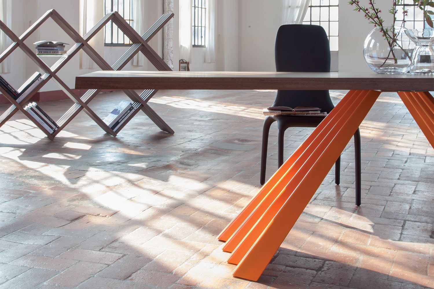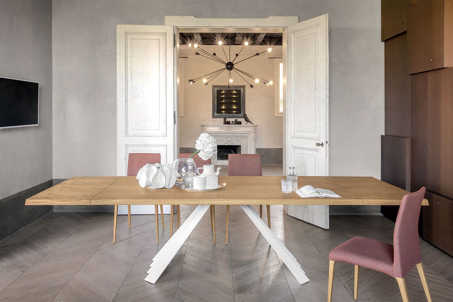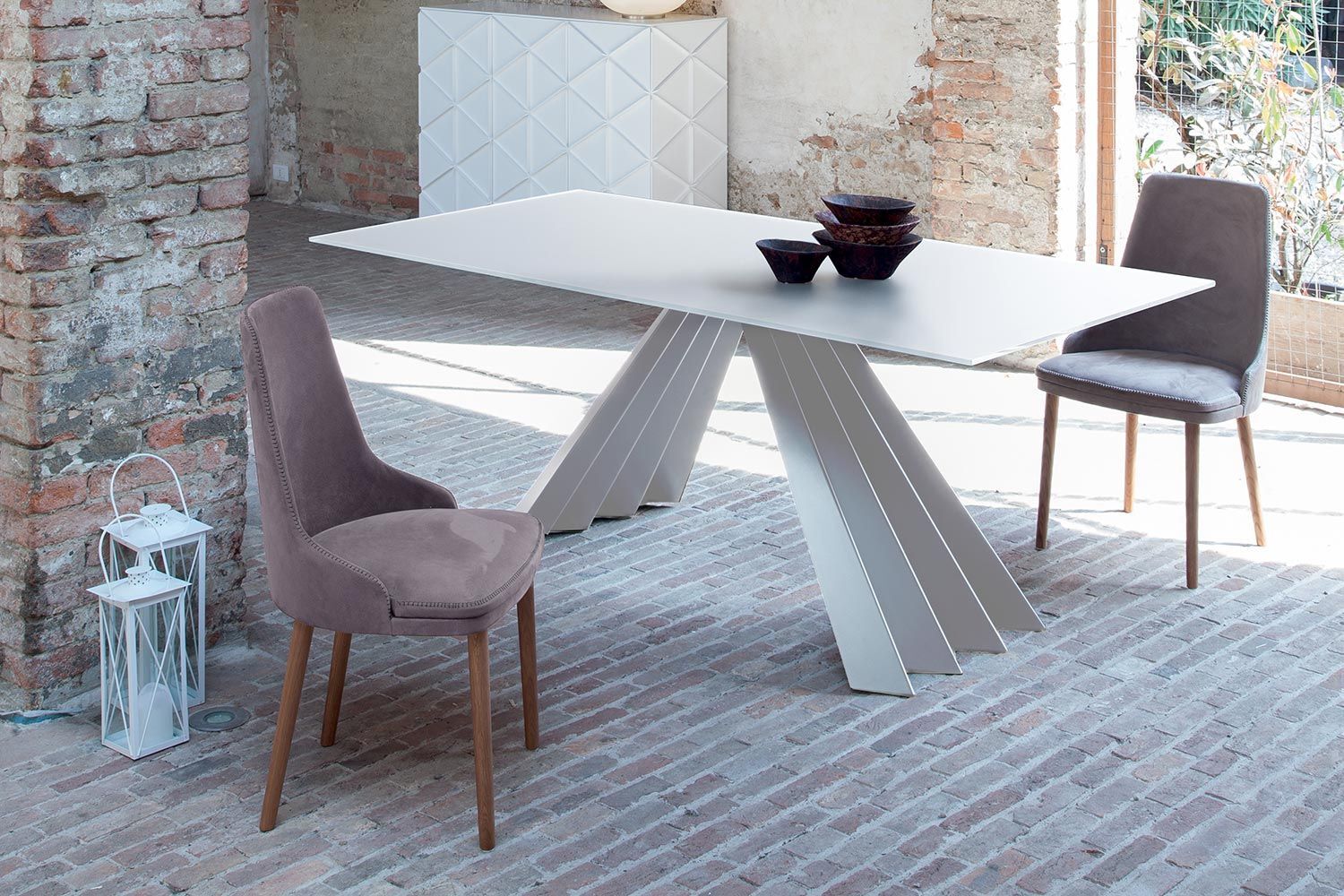 Dodaj odważny punkt centralny do swojej współczesnej przestrzeni za pomocą rzeźbiarskiego arcydzieła, stołu Ventaglio firmy Tonin Casa. Inspirowana geometrią podstawa ma ustawione pod kątem nogi, które rozchylają się i tworzą wielowymiarową trójkątną strukturę. Ta podstawa jest nie tylko estetyczna, ale także praktyczna, ponieważ zapewnia dodatkowe wsparcie dla przestronnego blatu. Połącz ten wielki stół z różnymi krzesłami do jadalni Tonin Casa, aby uzyskać spójny wygląd. Wyprodukowany we Włoszech i zaprojektowany przez Nicolę Tonin drewniany stół do jadalni Ventaglio jest dostępny w wielu rozmiarach. Blat jest dostępny w niezliczonych wersjach, a podstawa jest dostępna w różnych matowych i metalicznych wykończeniach.