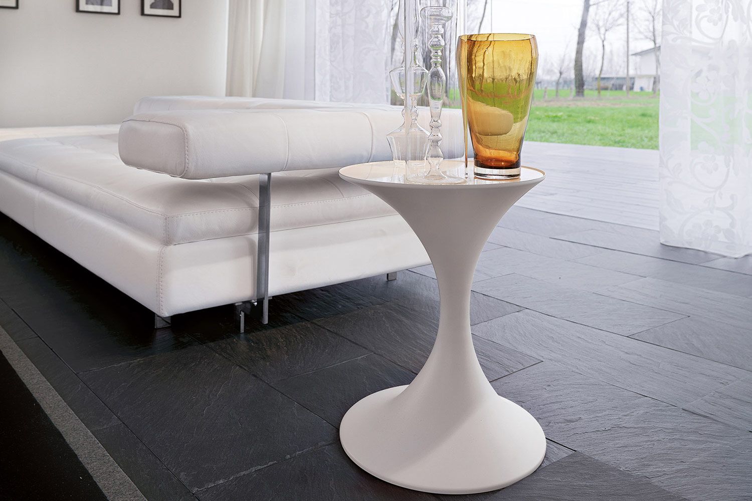 Stolik kawowy Andorra to wyjątkowe piękno, które jest również niezwykle praktyczne we współczesnym salonie. Ten stolik, przypominający klepsydrę, ma nowoczesny akcent z asymetrycznym profilem. Dzięki dużej ilości miejsca na górze jest dużo miejsca na napoje, przekąski, piloty i inne niezbędne przedmioty. Ustaw stolik, aby uzyskać wszechstronne efekty wizualny. Blat jest dostępny w wykończeniu ze szkła, ceramiki i drewna, a rama jest dostępna w różnych opcjach metalowych i matowych.