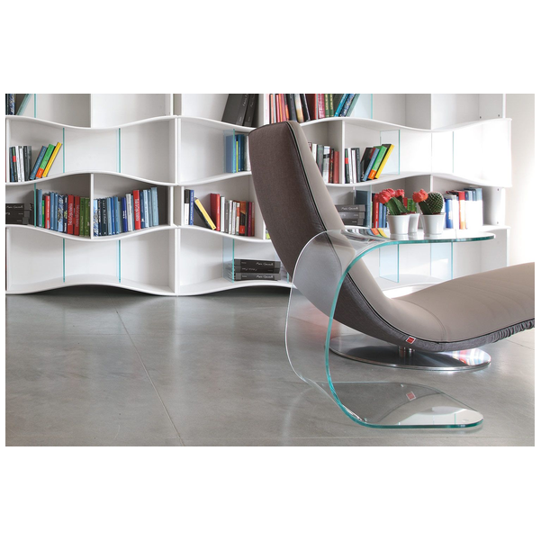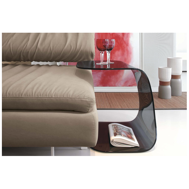 Stolik końcowy Beside to przydatny mebel do nowoczesnego salonu. Zakrzywiony kształt idealnie pasuje przy kanapie lub krześle, tworząc miejsce do pracy lub miejsce do jedzenia. Podstawa może również służyć jako praktyczna półka na materiały do czytania i inne drobne przedmioty. Chociaż konstrukcja całkowicie szklana wydaje się delikatna, jest trwała i wytrzymała oraz zaprojektowana tak, aby przetrwać lata. Wybierz pomiędzy konfiguracją lewą lub prawą i różnymi wykończeniami szkła.