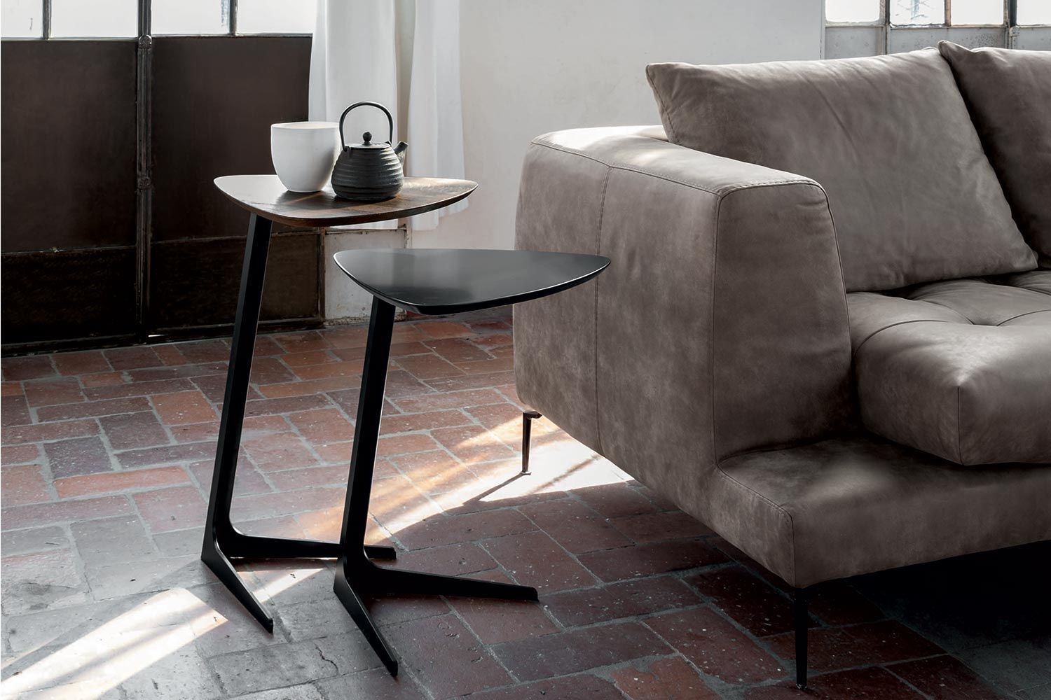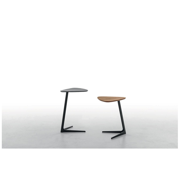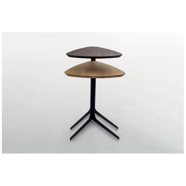 Minimalistyczny stolik kawowy Celine, inspirowany geometrią, to wygodny dodatek do nowoczesnego salonu. Kątowa podstawa może wsunąć się przy kanapie lub fotelu, aby stworzyć prowizoryczne miejsce do pracy lub miejsce do jedzenia. Dzięki trójkątnemu blatowi wyróżnia się stylem i doskonale komponuje się z resztą nowoczesnego wystroju. Wyprodukowany we Włoszech w celu zapewnienia jakości stolik końcowy Celine firmy Tonin Casa jest dostępny w dwóch różnych rozmiarach. Rama ma różne matowe wykończenia, a blat jest dostępny w różnych wersjach drewna.