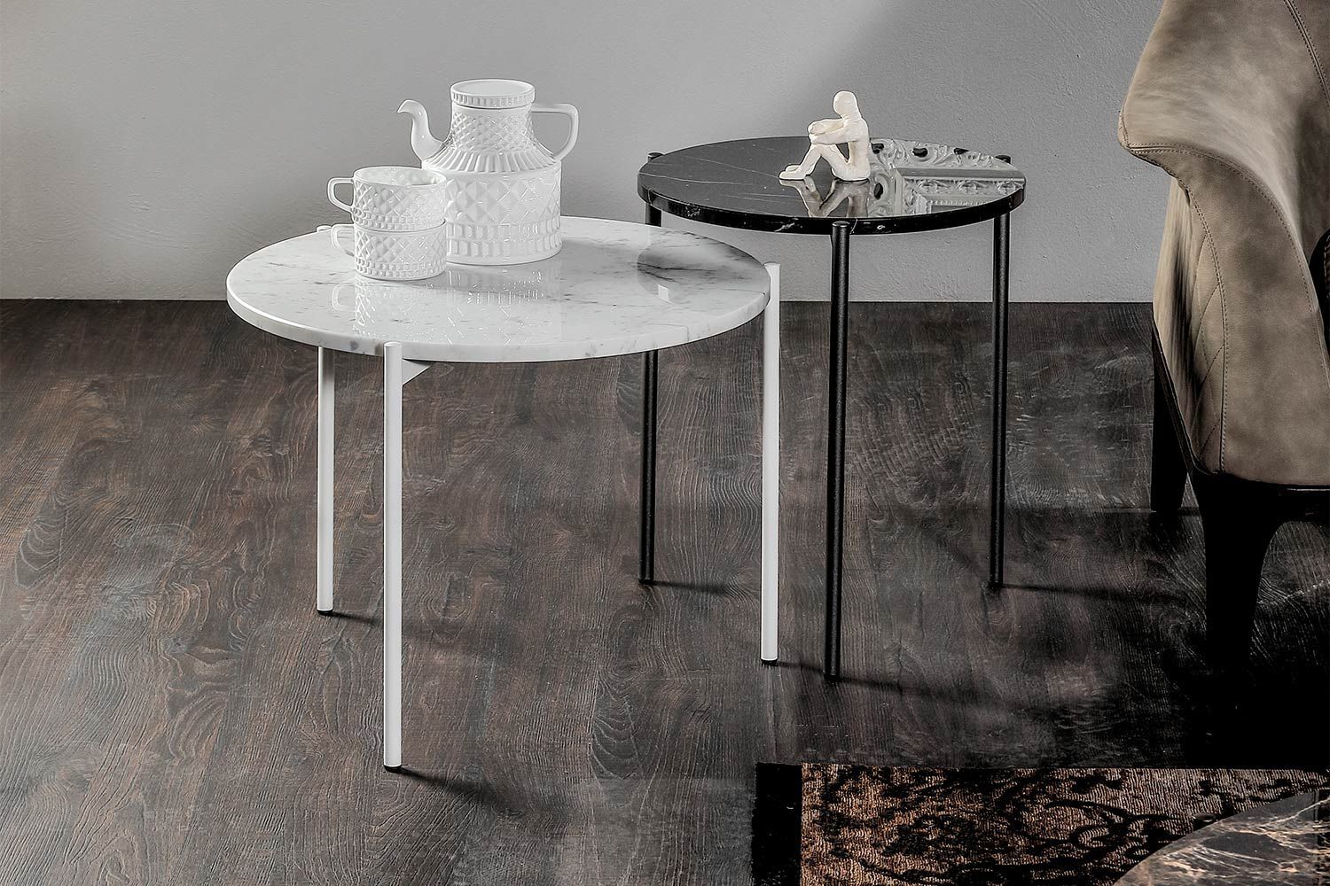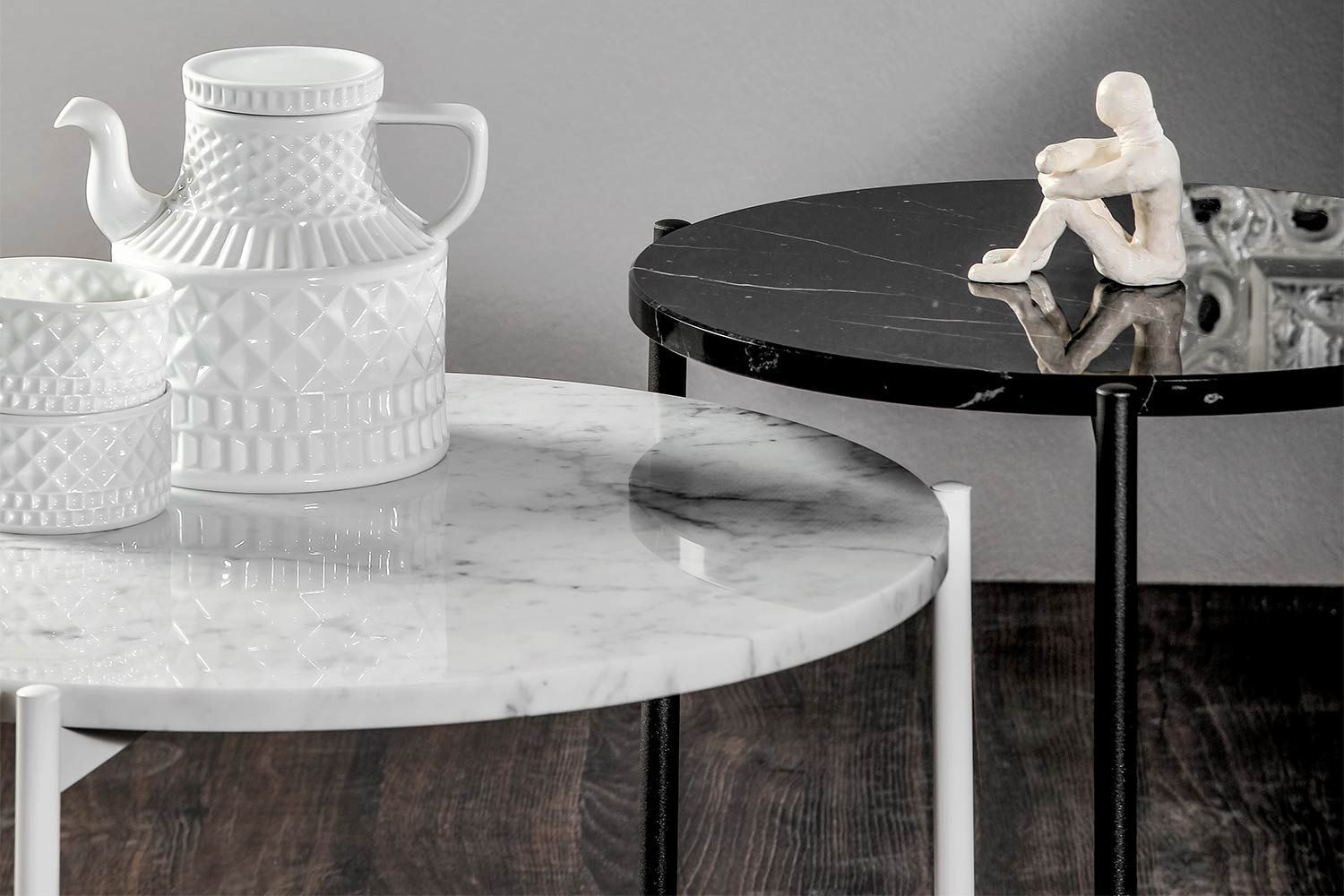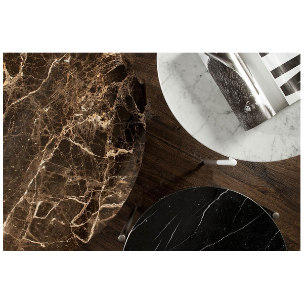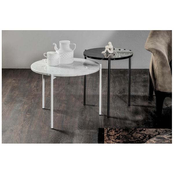Błyskawicznie podnieś styl pomieszczenia za pomocą wspaniałego stolika kawowego Icon. Idealny do nowoczesnego salonu, stół ma przyjazną postawę dzięki minimalistycznemu wzornictwu i okrągłej sylwetce. Stolik kawowy z trzema cienkimi nogami wygląda krucho, ale jest wykonany z najlepszej jakości materiałów, dzięki czemu jest mocny i wytrzymały na lata. Na górze jest dużo miejsca na napoje, przekąski, piloty i inne przedmioty. Wyprodukowany we Włoszech z niesamowitą dbałością o szczegóły, stolik kawowy Icon marki Tonin Casa ma dopasowany stolik końcowy, który zwiększa atrakcyjność. Dostępne są dwa rozmiary i różne wykończenia marmuru z blatem, a podstawa jest dostępna w różnych metalowych opcjach.