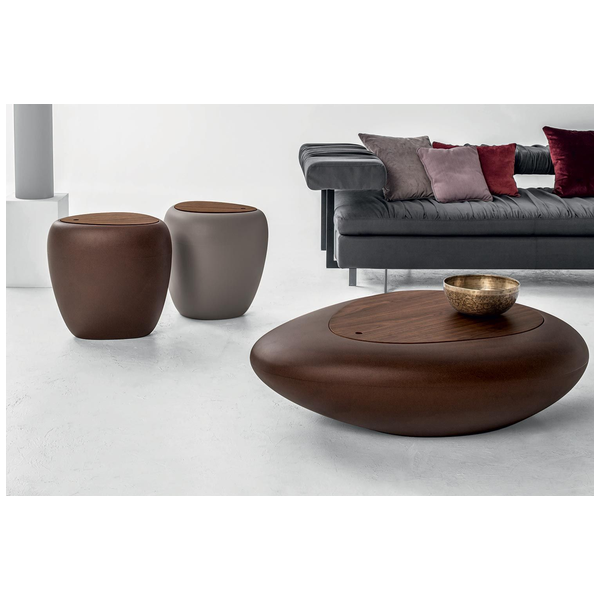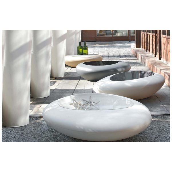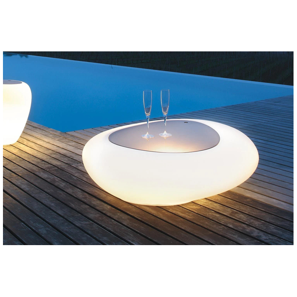 Zainspirowany naturą stolik kawowy Kos ze światłem lub bez, przypomina kamień i stanowi wyraz w nowoczesnym salonie. Plastikowa rama podświetla się, dzięki czemu jest to nie tylko efektowny stół, ale także imponująca oprawa oświetleniowa. Dzięki dużej ilości miejsca na rzeczy, blat można zdjąć, aby odsłonić ukryty schowek, który utrzymuje rzeczy poza zasięgiem wzroku i porządkuje. Okrągły i zachęcający stolik kawowy stanowi piękny punkt centralny i jest wykonany tylko z najlepszych materiałów. Rama jest dostępna w kolorze White Opuline, a na górze dostępny jest szereg opcji z pleksi i drewna.