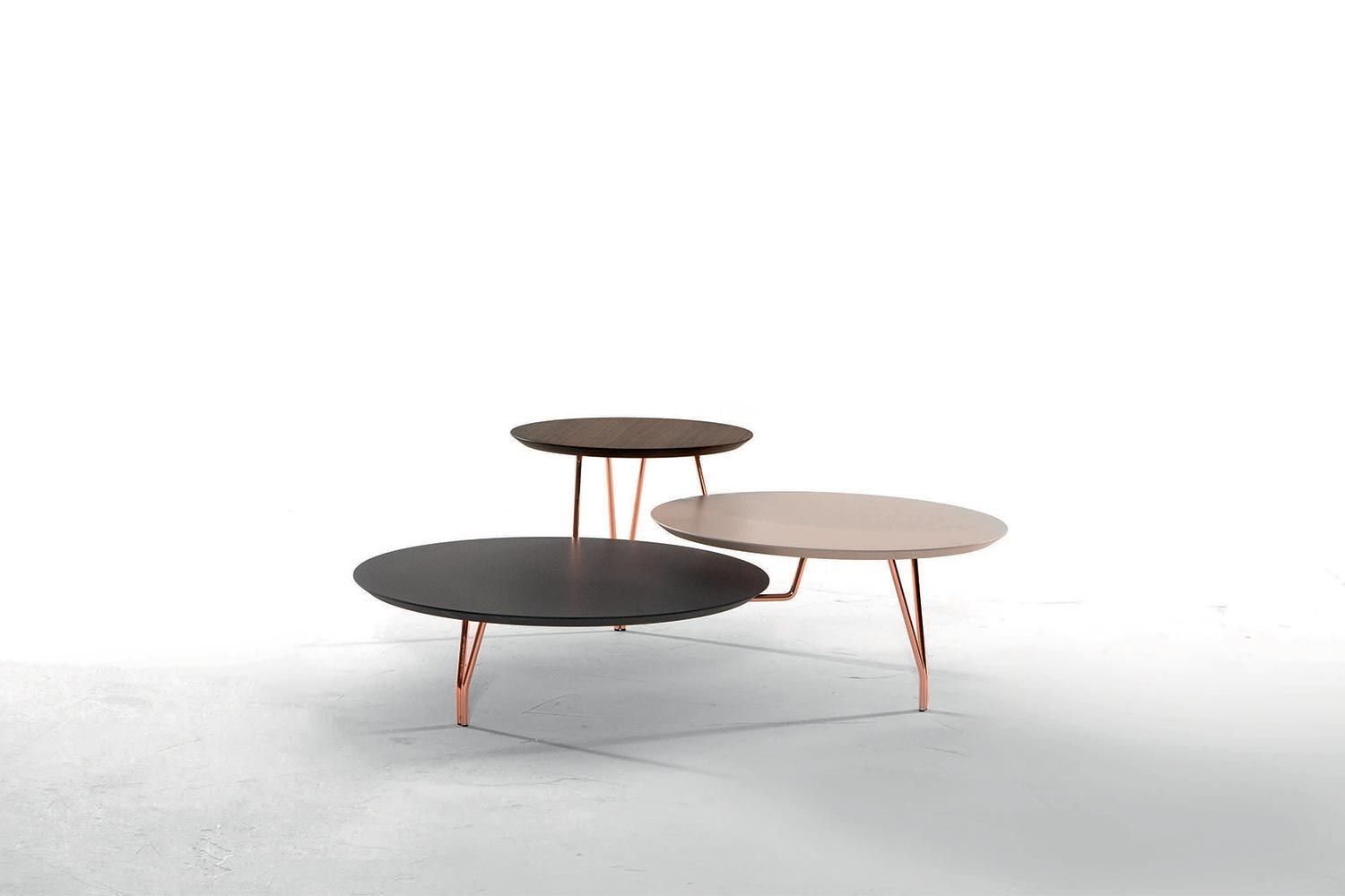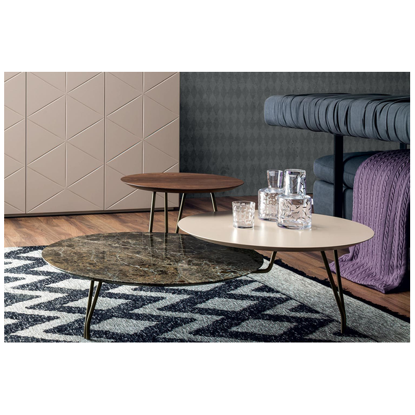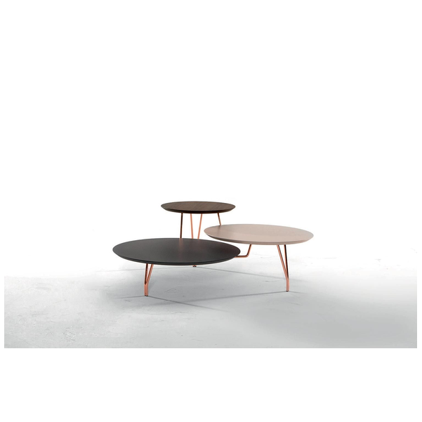 Stolik kawowy Log stanowi piękny centralny punkt w nowoczesnym salonie. Trzy blaty są na różnych wysokościach i rozmiarach, tworząc przyciągającą wzrok sylwetkę. Każdy blat ma indywidualne kolory, które stykają się ze sobą, tworząc żywe zestawienie. Dzięki dużej ilości miejsca na blatach jest dużo miejsca na napoje, przekąski, piloty i elementy wystroju domu. Mocne i solidne metalowe nogi z łatwością podtrzymują stół. Blat, metalowe nogi mają wiele opcji wykończenia.