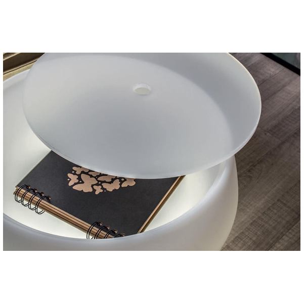 Błyskawicznie podnieś styl nowoczesnego salonu, dzięki geometrycznie inspirowanemu lekkiemu stolikowi Maki. Stół ma podwójną osobowość jako funkcjonalny stolik boczny i jasne światło, które pięknie oświetla przestrzeń. Przypominający figurę szachową stolik końcowy dodaje efektownego stylu, dzięki czemu jest to świetny kawałek do rozmowy. Aby zwiększyć atrakcyjność, górna część porusza się, odsłaniając ukrytą komorę, idealną do przechowywania małych przedmiotów. Lekki, trwały stolik Maki został zaprojektowany z myślą o zrównoważonym rozwoju, aby uczynić go wysokiej jakości meblem. Blat jest dostępny w wersjach z pleksi i drewna, a podświetlana podstawa jest wykończona w kolorze White Opuline.