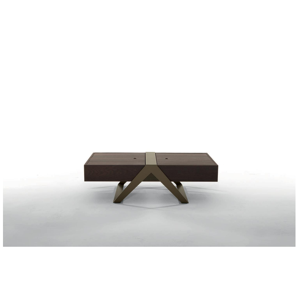 Stolik kawowy Matrioska dodaje odważnego stylu do nowoczesnej jadalni, salonu. Przypominający stół piknikowy, stolik kawowy ma zachęcającą postawę z ustawionymi pod kątem nogami. Kontrast między blatem, a podstawą wyróżnia się wzajemnie i tworzy żywe zestawienie. Dzięki wytrzymałemu, wysokiej jakości materiałom i wyjątkowemu włoskiemu kunsztowi, będzie to mebel dekoracyjny na lata. Podstawa jest wykończona w kolorze Stone Bronze, a blat ma różne wykończenia z drewna.
