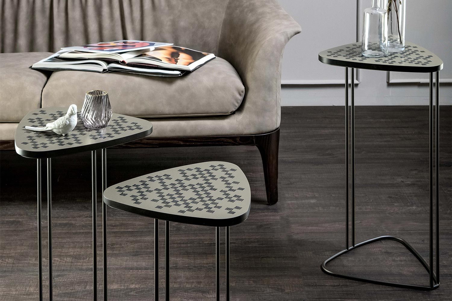 Inspirowany geometrią i uderzający stolik kawowy Mix marki Tonin Casa jest nie tylko estetyczny, ale także praktyczny. Trójkątny profil ma zaokrąglone krawędzie zapewniające chłodny dotyk, a szkieletowa podstawa nadaje stołowi otwarty i przewiewny charakter. Dzięki dużej powierzchni na górze jest dużo miejsca na niezbędne przedmioty i elementy współczesnego wystroju. Wyprodukowany we Włoszech z niesamowitą dbałością o szczegóły, stolik kawowy Mix ma solidną metalową podstawę, dzięki czemu będzie trwały przez wiele lat. Blat można łatwo dostosować za pomocą różnych wzorów i wykończeń szklanych. Dostępny jest pasujący stolik końcowy, który zapewnia spójny wygląd.