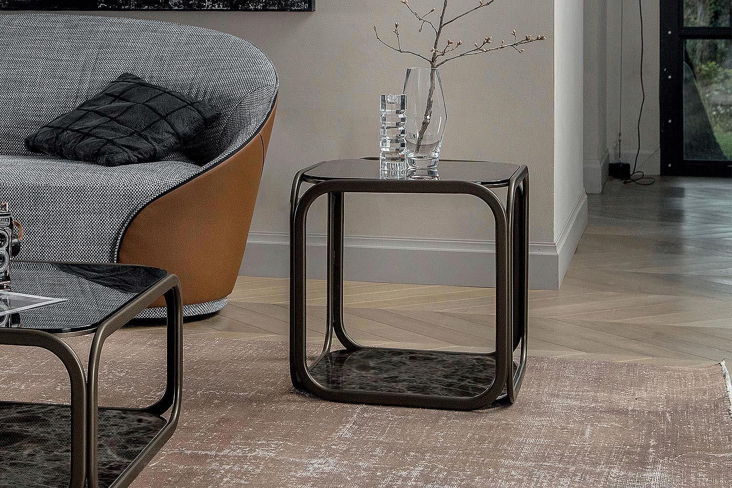Niezwykły stolik kawowy Remind przyciąga współczesny wygląd w nowoczesnym salonie. Zainspirowana geometrią, otwarta i przewiewna struktura przyciąga wzrok i jest wygodny dzięki półce u podstawy, która zapewnia dodatkową przestrzeń na rzeczy. Zakrzywione detale dodają stylu i sprawiają, że stół dobrze dopasowuje się do innych nowoczesnych mebli w całym pokoju. Dostępne są dwa rozmiary, a blat i podstawa są w różnych wersjach ceramicznych, metalowe akcenty są wykończone w kolorze Stone Bronze. Dostępny jest stolik końcowy, który zapewnia spójny wygląd.