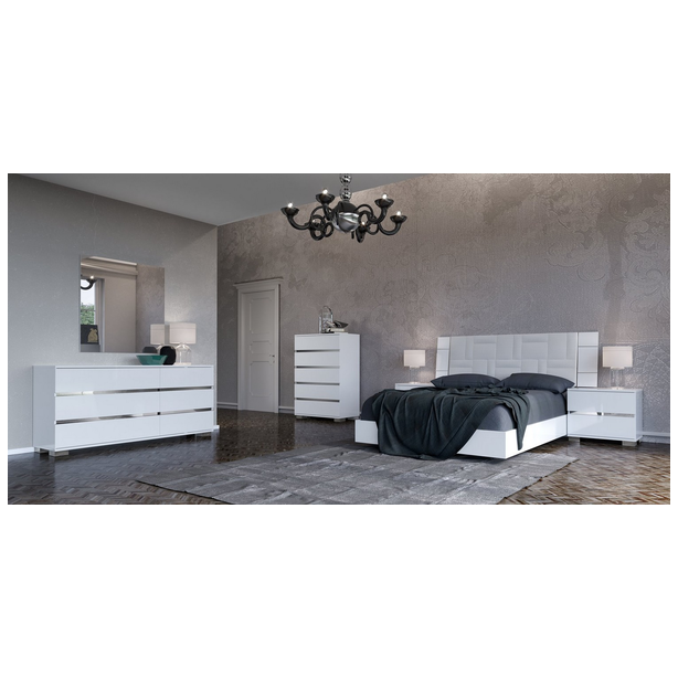 Wykwintna Sypialnia Dream firmy Status to elegancka kolekcja - 100% Made in Italy z naciskiem na włoską kulturę, wieloletnie doświadczenie i kreatywne podejście rzemieślników do tworzenia mebli. Do wykańczania powierzchni stosuje się nietoksyczny biały lakier z aplikacją w kilku etapach. Dopełnieniem zestawu są stalowe nogi, uchwyty, polerowane chromowane elementy, lustra, wbudowane oświetlenie LED, eko-skóra kroko i beż Vermont do tapicerki.