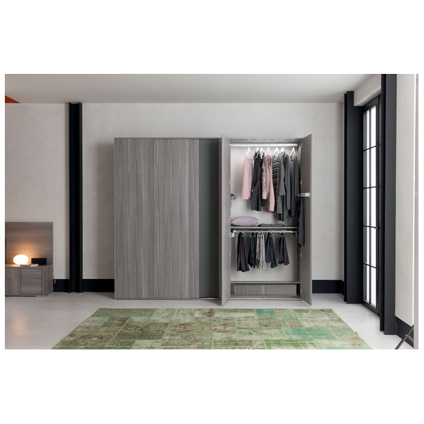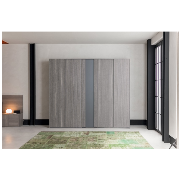 Nowoczesna sypialnia Futura o eleganckim designie to niewidzialna granica między tradycją i nowoczesnością. Jakość materiałów, certyfikaty produktów, kontrola produkcji, doskonałe wyposażenie, doskonałe właściwości użytkowe, to wszystko to meble Status 100% Made in Italy. Kolekcja zawiera niezbędny zestaw mebli do wygodnej organizacji przestrzeni i jej zagospodarowania przestrzennego. Do zestawu wybrano laminat z matowego szarego dębu o powierzchni odpornej na zarysowania. Połączone wezgłowie łóżka, a także oryginalnie zaprojektowane fronty mebli „nad głową” podkreślają ich indywidualność.