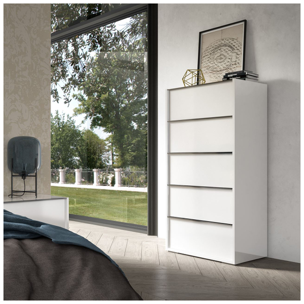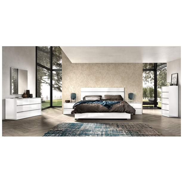 Luna to nowoczesna i funkcjonalna sypialnia, która nadaje przestronności otaczającemu środowisku, wzmocniona polerowanymi chromowanymi akcentami.