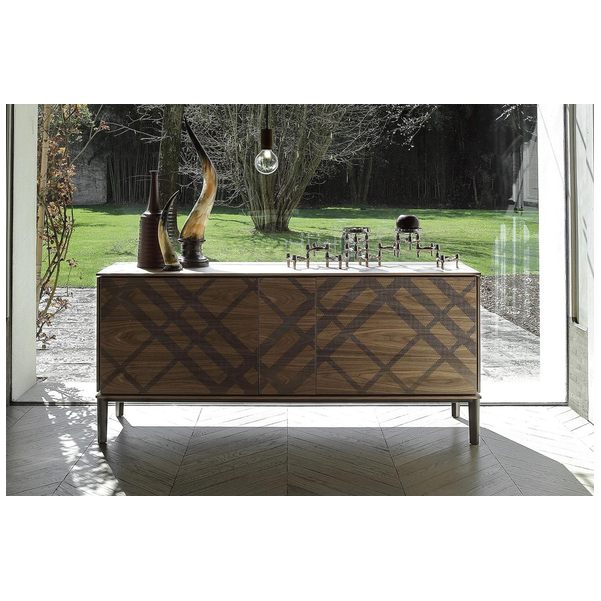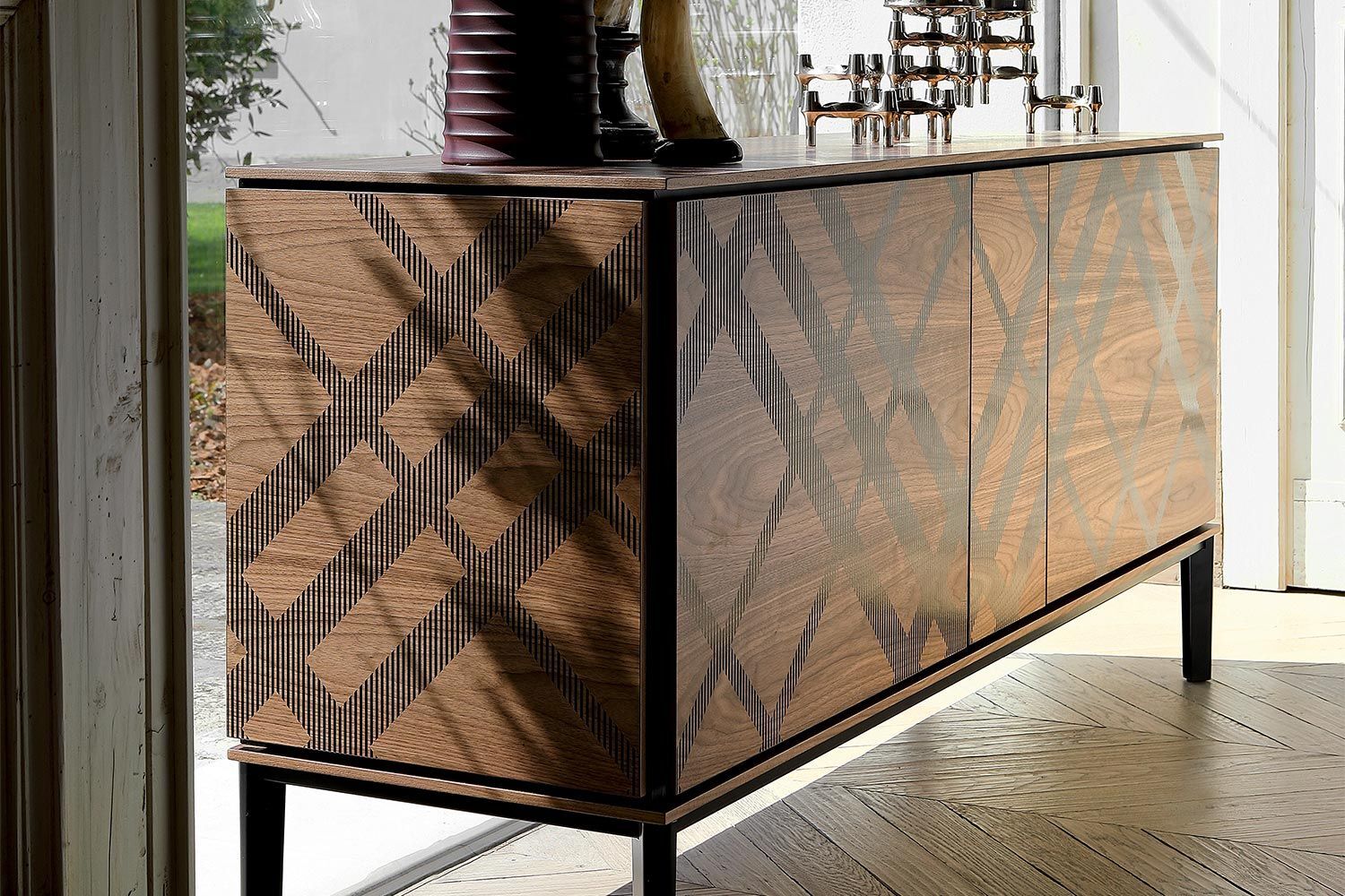 Komoda Tartan w szkocką kratę Tonin Casa dodaje szyku nowoczesnemu domowi. Inspirowane geometrią linie na strukturze przecinają się, tworząc przyciągający wzrok wzór w stylu argyle. Ten wysokiej jakości mebel to produkt obowiązkowy, znajdujące się w środku półki ułatwiają organizację, obszerny blat zapewnia niezliczone możliwości ekspozycyjne.